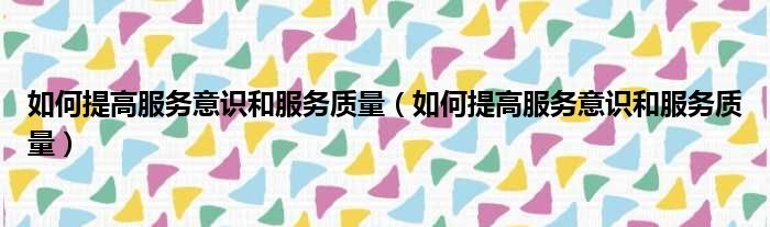 如何提高服务意识和服务质量(如何提高服务意识和服务质量)