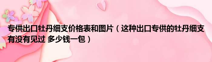 大家好,小活来为大家解答以上的问题。专供出口牡丹细支价格表和图片,这种出口专供的牡丹细支有没有见过 多少钱一包这个很多人还不知道,现在让我们一起来看看吧!