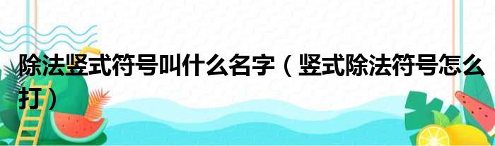 大家好,小活来为大家解答以上的问题。除法竖式符号叫什么名字,竖式除法符号怎么打这个很多人还不知道,现在让我们一起来看看吧!
