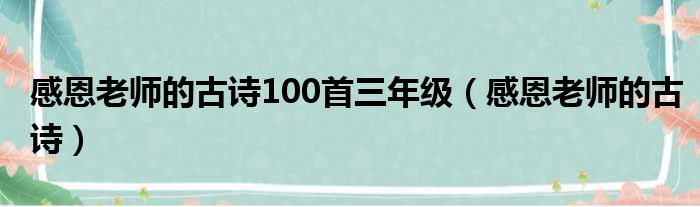 感恩老师的古诗100首三年级(感恩老师的古诗)