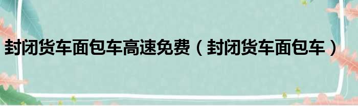 大家好,小活来为大家解答以上的问题。封闭货车面包车高速免费,封闭货车面包车这个很多人还不知道,现在让我们一起来看看吧!