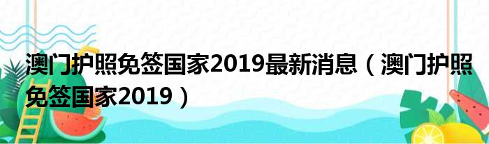 澳门护照免签国家2019最新消息(澳门护照免签国家2019)