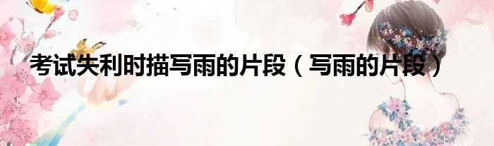 大家好,小活来为大家解答以上的问题。考试失利时描写雨的片段,写雨的片段这个很多人还不知道,现在让我们一起来看看吧!