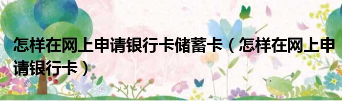 怎样在网上申请银行卡储蓄卡(怎样在网上申请银行卡)