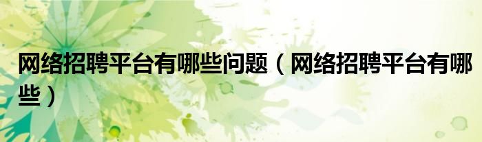 网络招聘平台有哪些问题(网络招聘平台有哪些)