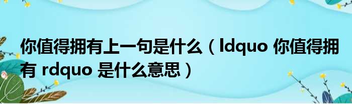 你值得拥有上一句是什么(ldquo 你值得拥有 rdquo 是什么意思)