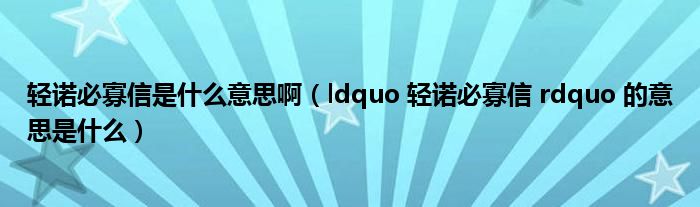 轻诺必寡信是什么意思啊(ldquo 轻诺必寡信 rdquo 的意思是什么)