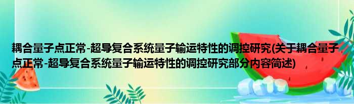 耦合量子点正常-超导复合系统量子输运特性的调控研究(关于耦合量子点正常-超导复合系统量子输运特性的调控研究部分内容简述)
