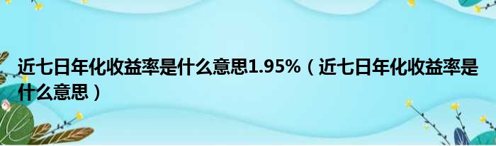 近七日年化收益率是什么意思1.95%(近七日年化收益率是什么意思)