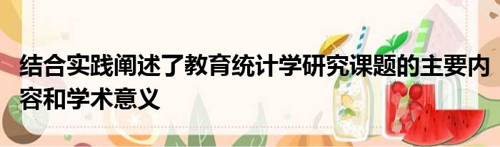 导读 大家好,小活来为大家解答以上的问题。结合实践阐述了教育统计学研究课题的主要内容和学术意义这个很多人还不知道,现在让我们一起来看看吧!