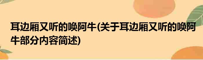 导读 大家好,今天小方来说说一篇关于耳边厢又听的唤阿牛,关于耳边厢又听的唤阿牛部分内容简述的文章,那么现在就为大家来简单介绍下,希望对各
