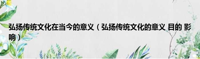 弘扬传统文化在当今的意义(弘扬传统文化的意义 目的 影响)