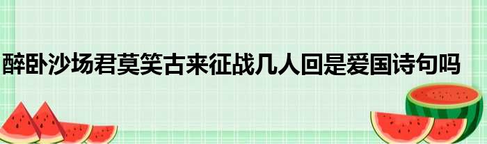 大家好,小活来为大家解答以上的问题。醉卧沙场君莫笑古来征战几人回是爱国诗句吗这个很多人还不知道,现在让我们一起来看看吧!