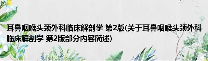 耳鼻咽喉头颈外科临床解剖学 第2版(关于耳鼻咽喉头颈外科临床解剖学 第2版部分内容简述)