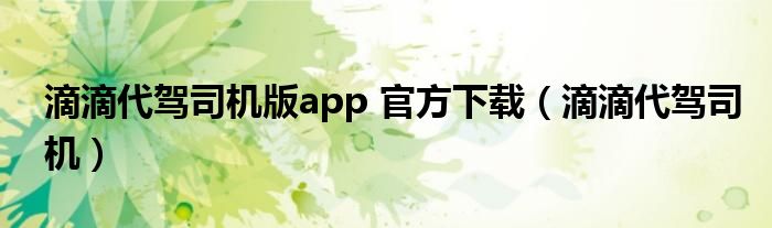 滴滴代驾司机版app 官方下载(滴滴代驾司机)