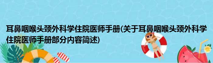 耳鼻咽喉头颈外科学住院医师手册(关于耳鼻咽喉头颈外科学住院医师手册部分内容简述)
