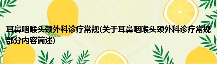 耳鼻咽喉头颈外科诊疗常规(关于耳鼻咽喉头颈外科诊疗常规部分内容简述)
