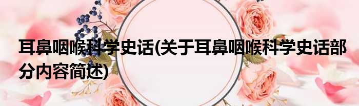 耳鼻咽喉科学史话(关于耳鼻咽喉科学史话部分内容简述)