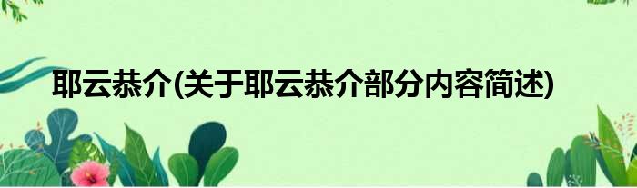 导读 大家好,今天小方来说说一篇关于耶云恭介,关于耶云恭介部分内容简述的文章,那么现在就为大家来简单介绍下,希望对各位小伙伴们有所帮助。