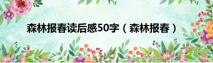 大家好,小活来为大家解答以上的问题。森林报春读后感50字,森林报春这个很多人还不知道,现在让我们一起来看看吧!