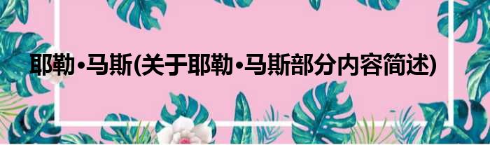 大家好,今天小方来说说一篇关于耶勒·马斯,关于耶勒·马斯部分内容简述的文章,那么现在就为大家来简单介绍下,希望对各位小伙伴们有所帮助。