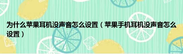 为什么苹果耳机没声音怎么设置(苹果手机耳机没声音怎么设置)