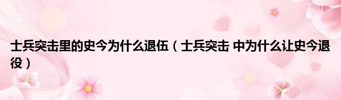 1、《士兵突击》中史今班长退役的原因表面上是军龄到了必须退役,但仔细观看这部影片后发现其实另有隐情,那就是史今班长在长期的军旅生涯中劳累过度,患上了某种神经性疾病,导致经常性头疼、视力下降等症状而不得不离开他心爱的部队。