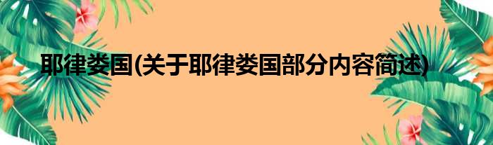 大家好,今天小方来说说一篇关于耶律娄国,关于耶律娄国部分内容简述的文章,那么现在就为大家来简单介绍下,希望对各位小伙伴们有所帮助。