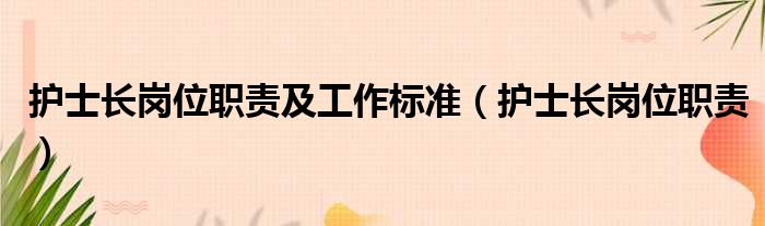 护士长岗位职责及工作标准(护士长岗位职责)