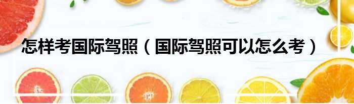怎样考国际驾照(国际驾照可以怎么考)