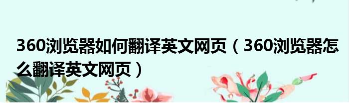 360浏览器如何翻译英文网页(360浏览器怎么翻译英文网页)