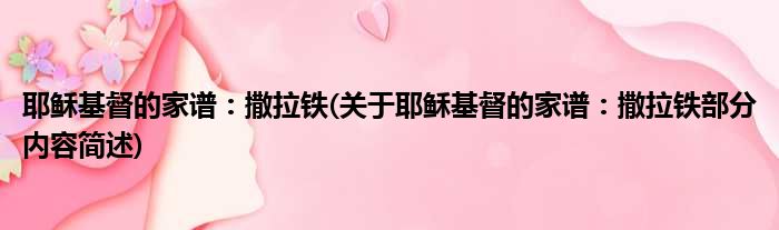 导读 大家好,今天小方来说说一篇关于耶稣基督的家谱:撒拉铁,关于耶稣基督的家谱:撒拉铁部分内容简述的文章,那么现在就为大家来简单介绍下,