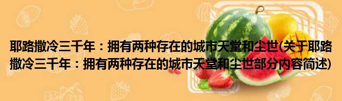 耶路撒冷三千年:拥有两种存在的城市天堂和尘世(关于耶路撒冷三千年:拥有两种存在的城市天堂和尘世部分内容简述)