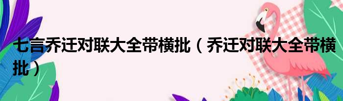 七言乔迁对联大全带横批(乔迁对联大全带横批)