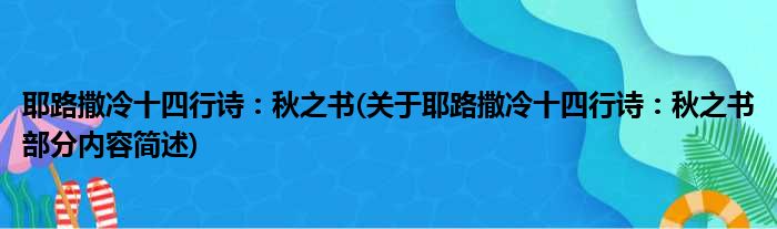 耶路撒冷十四行诗:秋之书(关于耶路撒冷十四行诗:秋之书部分内容简述)