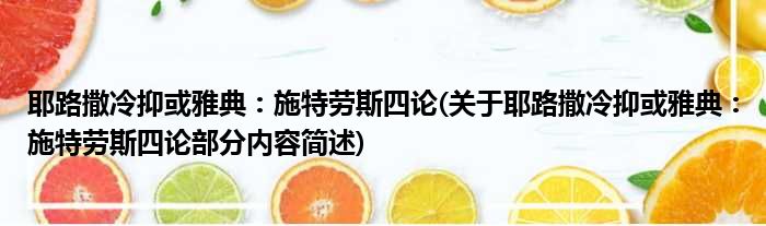 导读 大家好,今天小方来说说一篇关于耶路撒冷抑或雅典:施特劳斯四论,关于耶路撒冷抑或雅典:施特劳斯四论部分内容简述的文章,那么现在就为大