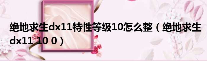 绝地求生dx11特性等级10怎么整(绝地求生dx11 10 0)