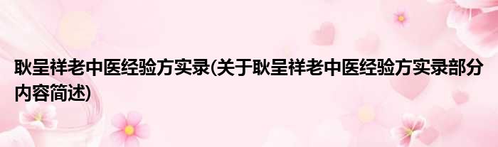 耿呈祥老中医经验方实录(关于耿呈祥老中医经验方实录部分内容简述)