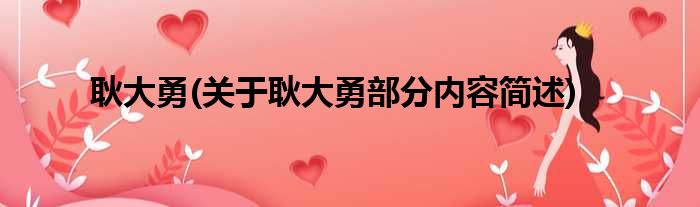 导读 大家好,今天小方来说说一篇关于耿大勇,关于耿大勇部分内容简述的文章,那么现在就为大家来简单介绍下,希望对各位小伙伴们有所帮助。