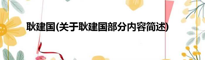 导读 大家好,今天小方来说说一篇关于耿建国,关于耿建国部分内容简述的文章,那么现在就为大家来简单介绍下,希望对各位小伙伴们有所帮助。