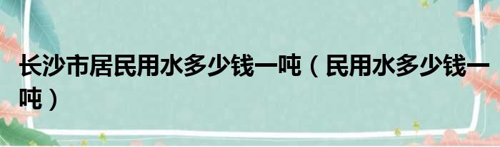 长沙市居民用水多少钱一吨(民用水多少钱一吨)