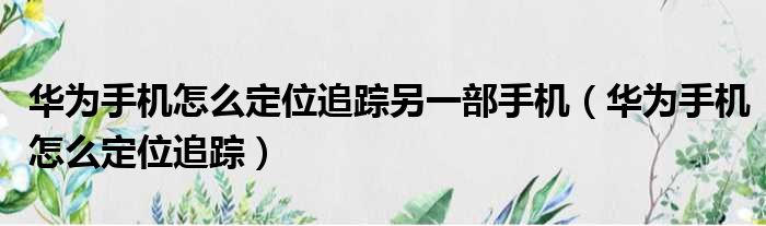 华为手机怎么定位追踪另一部手机(华为手机怎么定位追踪)