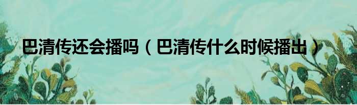 大家好,小活来为大家解答以上的问题。巴清传还会播吗,巴清传什么时候播出这个很多人还不知道,现在让我们一起来看看吧!