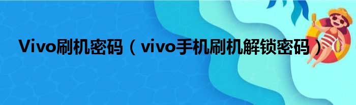 Vivo刷机密码(vivo手机刷机解锁密码)