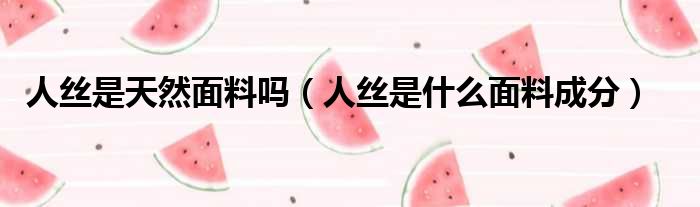 导读 大家好,小活来为大家解答以上的问题。人丝是天然面料吗,人丝是什么面料成分这个很多人还不知道,现在让我们一起来看看吧!1、人丝就是人造