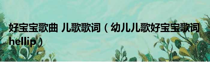 好宝宝歌曲 儿歌歌词(幼儿儿歌好宝宝歌词 hellip)