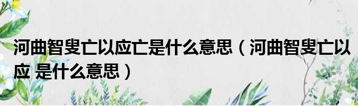 河曲智叟亡以应亡是什么意思(河曲智叟亡以应 是什么意思)