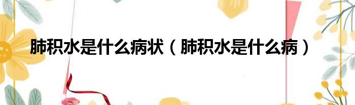 大家好,小活来为大家解答以上的问题。肺积水是什么病状,肺积水是什么病这个很多人还不知道,现在让我们一起来看看吧!