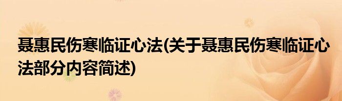 聂惠民伤寒临证心法(关于聂惠民伤寒临证心法部分内容简述)