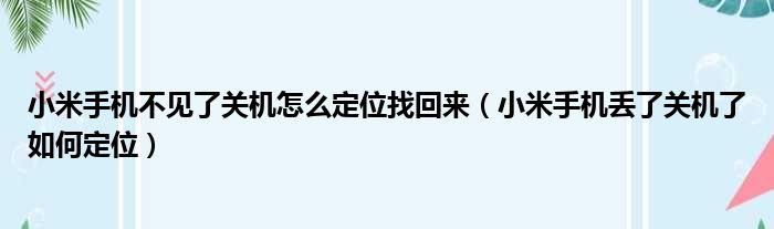 小米手机不见了关机怎么定位找回来(小米手机丢了关机了如何定位)